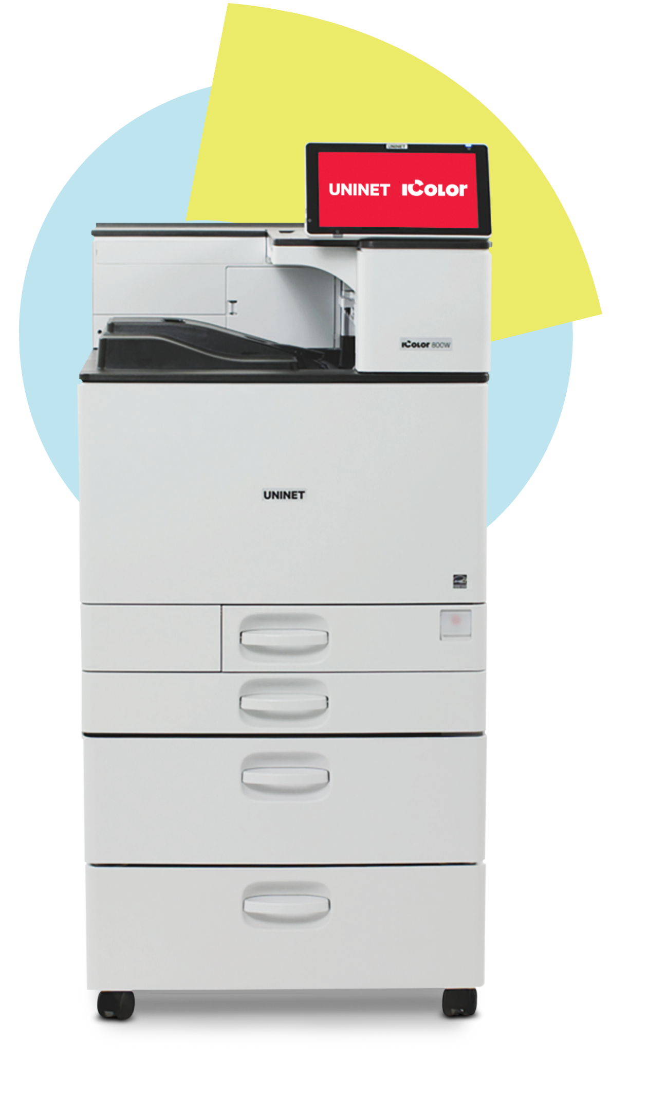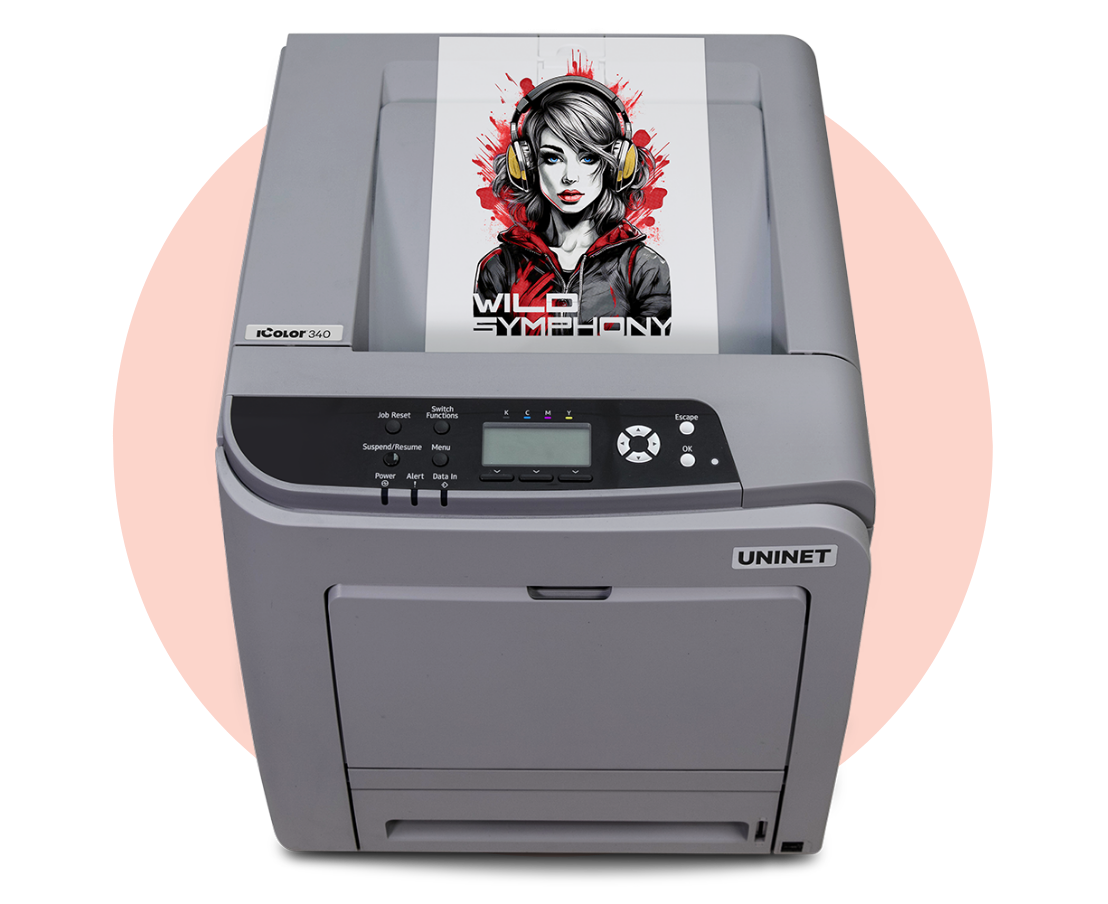 The UNINET® IColor® white toner transfer printer series is designed to help custom decorators start faster, print smarter, and scale with confidence. Using toner-based white printing technology that combines white and full color in a single workflow, it delivers vibrant, professional results on virtually any material—including dark, light, or colored textiles, hard surfaces like metal, acrylic, ceramic, wood, and more, as well as labels, stationery, banners, invitations, and much more.